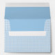 This envelope has a preppy grandmillennial design featuring a blue gingham pattern on the back flap with a crest your can personalize with your initial. The back and the inside have a coordinating floral pattern.