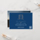 Monogram heart crown with berries and leaves entwined crest wedding landscape invitation in rose gold, white and rich dark blue. Personalize with your own initials and wedding details. Original hand drawing and design by Sarah Trett for www.mylittleedenweddings.com