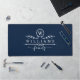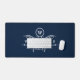 Monogram Custom Family Name White Script Desk Mats features a monogram and personalized family name in elegant white script typography on a dark blue background. Perfect gift for family and friends for birthday, Christmas, Father's Day, Mother's Day, Grandparents, wife, husband, mom, dad and more. Designed by ©Evco Studio www.zazzle.com/store/evcostudio