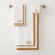 Create a monogrammed towel set with custom initials and hotel boarder. Give as a gift for wedding, or new home.