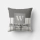 monogram custom pillow sepia and white stripes distressed style with dark brown text to personalize for unique home decor.