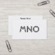 A monogram of initials or a short name appears on the front. On the back appears full name text, address text, and phone or social media networking text.