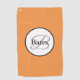 The monogram customized golf towel has an orange background with a large white circle design outlined in black. The last name monogram grey letter is centred in circle along with the full last name in black. This golf towel is great gift for all golf players on Birthdays, Father's Day and more.