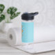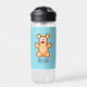 Monogram cute brown teddy bear on blue water bottle