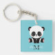 Monogram Cute Panda Personalized Bubble Gum Blue Keychain