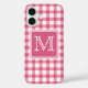 Monogram | Cute Pink Gingham Plaid Chequered Case-Mate iPhone Case