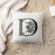 Monogram D Initial Black and White Floral Pattern Throw Pillow