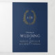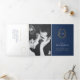 Monogram dark blue gold leaf wedding option RSVP Tri-Fold Invitation