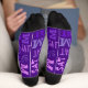 Personalized by you, these novelty Saturday Day Of The Week socks in royal purple with a custom monogram initial are the ultimate fun gift. These one of a kind monogram socks feature your choice of monogram letters in a bold font scattered among a collage pattern of SAT (short for for SATURDAY) in a mix of cute thin handwritten and fun silly fonts in lighter shades of amethyst, lavender and orchid on a deep purple background. Personalized Saturday novelty socks in purple with a monogram of your choice makes a cute gift for almost any occasion. Check out my other available days for a personalized set of Days Of The Week socks for adults so you can create a full set in royal purple or mix and match colour choices. Fun for men and women, custom monogram Saturday socks in purple are a cute choice for Father's Day, Mother's Day, Birthdays, Holidays or as a gag gift.