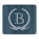 Monogram design with laurel wreath decoration on blue background