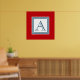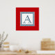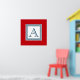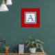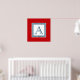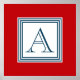 Nautical style monogram design with striped squares decoration on red background