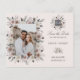 Featuring a chic floral bouquet of pink flowers, pine needle and grey foliage surrounding your monogram or initials with your name, wedding date and place in a elegant combination of cursive and capital letter, this stunning but cheap photo wedding save the date is perfect for any formal celebration, or elegant wedding with gothic romantic vibes. Personalize with your monogram, initials or duogram at the top using the template Card reverse to a matching grey with space for additional text, like formal invitation to follow, rsvp, wedding webside or other important information.