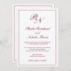 Monogram Elegant Burgundy All In One Wedding Invitation
