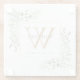 Monogram Elegant Modern Greenery Gold Glass Coaster
