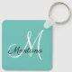 Monogram Elegant Modern Simple Girly Teal Keychain