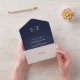 This chic minimalist all-in-one wedding invitation can be personalized with your monogram initials and wedding day information on a navy blue background. The invitation includes a perforated RSVP card that can be individually addressed or left blank for you to handwrite your guest's address details. Designed by Thisisnotme©