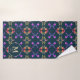 Monogram Faberge-like Rose Pattern on Dark Blue Bath Towel Set
