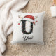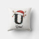 Monogram Family Christmas Antlers Santa Hat Throw Pillow