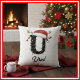 This personalized family Christmas throw pillow is designed for those who love holiday traditions and a personal touch in their home decor. The playful reindeer antlers and classic Santa hat instantly evoke the Christmas spirit, while the prominent monogrammed initial adds a unique, bespoke feel. Whether you're decorating your living room for festive gatherings or looking for a cozy seasonal accent, this pillow is a wonderful way to celebrate togetherness and create a warm, inviting atmosphere.