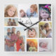 On this stylish wall clock is a collage of eight photos and in the centre is an area where you can customize it with a letter and family name making it you own family keepsake.