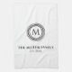 Stylish monogrammed kitchen towel features custom family name, monogram initial and year established date. Minimalist white kitchen towel with modern decorative stylized medallion in black and white. Monogram initial and family name presented in modern typography with coordinating decorative accents. A perfect addition to your kitchen decor or a thoughtful modern housewarming gift for the new homeowners in your life or stylish monogrammed kitchen gift for the newlyweds or trendy family in your life. You can personalize with your custom monogram initial, family name and established date using the fields provided, or use the "message" button for designer help.