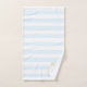 It was advertised as NAVY blue and the color sent was greenish blue. I am disappointed in this product. Quality and printing are great as are all my other orders. As you can see in picture the tea towel on right is perfect, hand towel not so much! Print was awesome and just as ordered