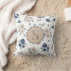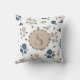 Monogram Farmhouse Floral Blue Tan Country Rustic Throw Pillow