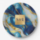 Monogram Faux Gold, Blue and White Marbled Wedding Paper Plate