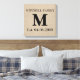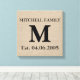 Add your own monogram, initial, family name and wedding anniversary or birthday date faux jute linen burlap rustic chic shabby country chic art canvas