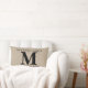 Monogram faux linen burlap rustic chic initial jut lumbar pillow