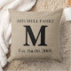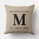 Add your own monogram, initial, family name and wedding anniversary or birthday date faux jute linen burlap rustic chic shabby country chic cotton throw pillow.