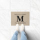Custom add your own monogram, initial, family name and wedding anniversary or birthday date faux jute linen burlap rustic chic shabby country chic doormat.