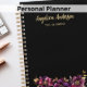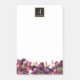 3 blooming flowers in deep red, purple and golden details and leaves are grouped in a soft bow on the lover part on each sheet. A black printed square with a golden frame, your monogram letter and full name customizable for you, are placed all the way on the top.
