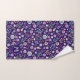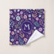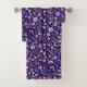 Monogram Floral Whimsical Pattern Towel Set. Whimsical boho floral pattern, bold colours, trendy floral design. Flowers, leaves, buds and berries. Pink, blue, green, golden (colour), purple and orange. Dark blue background makes the flowers pop. Dark blue + light blue monogram.