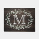 Custom Monogram Floral Wreath & Wood Burlap Effect Doormat.