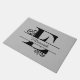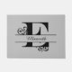 On this distinctive door mat, your name is in script at the centre of a divided flourish letter E. The name and letter are in black, and shown on a medium to light grey background. You may change the background colour, if you'd like, by choosing to Edit Design. Elegance for your entryway!