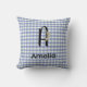 Monogram initial watercolor flower gingham blue green pattern Throw Pillow