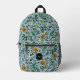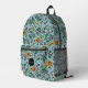 Monogram Flower Pattern orange Swirl Berry on Teal Printed Backpack