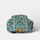 Monogrammed Joyful Backpack for Back to School or Cityscape - Flower Pattern orange Swirl Berry on a teal Background Design is hand drawn and shows a seamless repeating floral pattern with green leaves and round orange berries. The main colours in this Pattern are, green, orange.