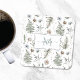 Monogram Flowers and Fern Leaves Floral Botanical Square Paper Coaster