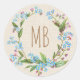 Monogram Forget-Me-Not Wreath Blue Beige Rustic Classic Round Sticker