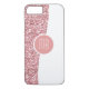 Monogram smartphone case with simulated pink sparkling glitter digitally printed on the cover along with colour coordinated monogram emblem in pink and white you can personalize and make your own. Designed for ladies or girls who like a little glitz and glam on their cellphone cover.