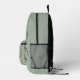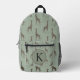 On this stylish backpack are gold glittery giraffes in a repeat pattern on a dusky sage green backdrop for extra pop. Chic modern vibes. Can be personalized with a letter in the middle in a green sphere on the front pocket
