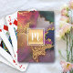 Monogram gold purple navy green watercolor marble playing cards