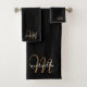 Monogram Gold Script Name Black Bath Towel Set