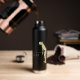 This beverage bottle features a gold silhouette woman golfer ready to putt. Your monogram in matching gold is framed by thin gold lines. This design looks best on the black colour of bottle. Be sure to see the matching products, including a golf towel, in our store.
