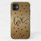 Monogram Gold with Love Apple iPhone 11Case designed with a Faux Gold Background and decorated with a scattering of black hearts. The text includes your Monogram and Love. To personalize with your initials, simply replace the sample text using our easy template. Makes a great Christmas Gift.