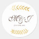 Monogram Golden Leaves Branches and Dark Brown Classic Round Sticker