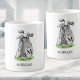 This classic ceramic mug features a stylish grey watercolor golf bag filled with clubs, surrounded by a touch of green grass. The design is printed on both sides of the mug for easy viewing whether you’re left- or right-handed. A simple serif font initial monogram is placed directly on the golf bag, blending seamlessly into the artwork. Below the monogram, the full name is displayed in a matching serif font for a clean and personalized touch. The monogram is currently in a dark grey, almost black, to match the bag’s accents, but you can customize it to any colour you prefer.