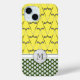 Add a monogram to the 'golf ball' to personalize this striking case coloured yellow, green, white and black. It has two golfing-themed patterns: crossed golf clubs on yellow, and polka dot golf balls on green.